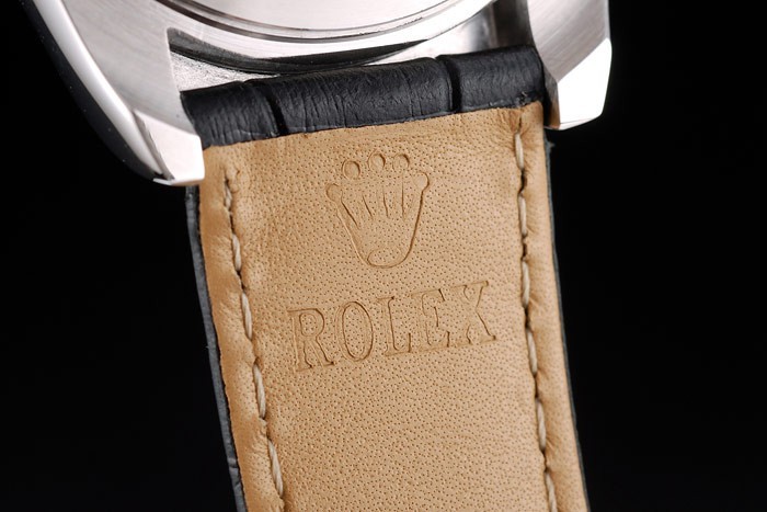 Bracelet en acier inoxydable brossé: Rolex en relief crocodile noir bracelet en cuir de chaleur avec gravé en acier inoxydable boucle déployante avec logo Rolex sur top