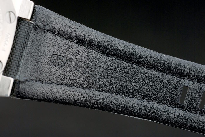 Bracelet en acier inoxydable brossé: Tissu noir doublé Audemars Piguet thermique gaufré bracelet en cuir avec logo gravé brossé crochet- en acier inoxydable clasp