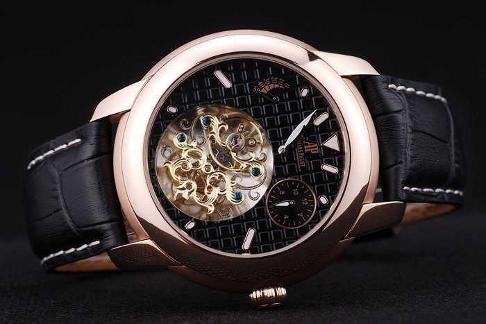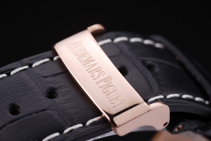 Bracelet en acier inoxydable: Heat gaufré Audemars Piguet crocodile noir bracelet en cuir avec Audemars Piguet gravé pli en acier inoxydable clasp