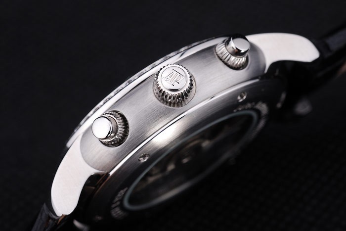 Crown: couronne cutwork en acier inoxydable avec Audemars Piguet logo et deux petits boutons-poussoirs couronnes de chaque c té de it