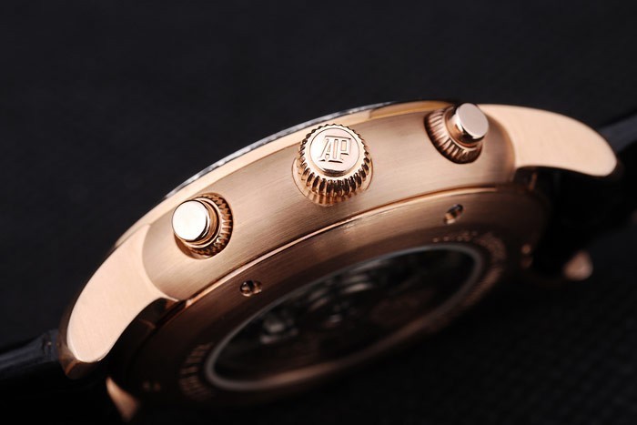 Crown : 18K plaqué or rose couronne cutwork avec Audemars Piguet logo et deux petits boutons-poussoirs couronnes de chaque c té de it