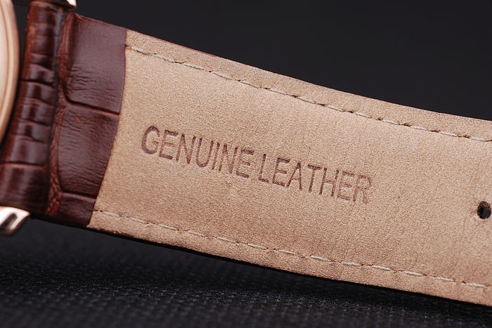Bracelet en acier: Brown bracelet en cuir de crocodile avec la chaleur en relief Audemars Piguet nom et le logo et une Audemars Piguet inscrits plaqué 18k or rose flip-dessus le crochet clasp
