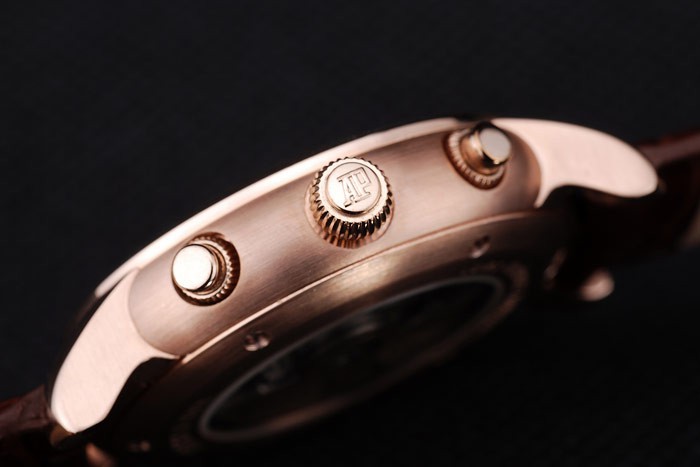 Glass: Sapphire plaqué 18k or rose couronne cutwork avec Audemars Piguet logo et deux petits boutons-poussoirs couronnes de chaque c té de it