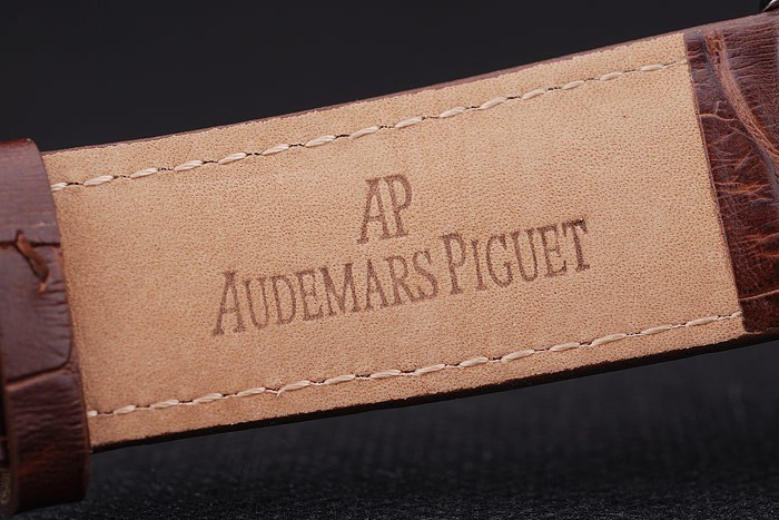 Bracelet: Brown bracelet en cuir de crocodile avec la chaleur en relief nom et le logo Audemars Piguet et une Audemars Piguet inscrit en acier inoxydable flip-dessus le crochet clasp