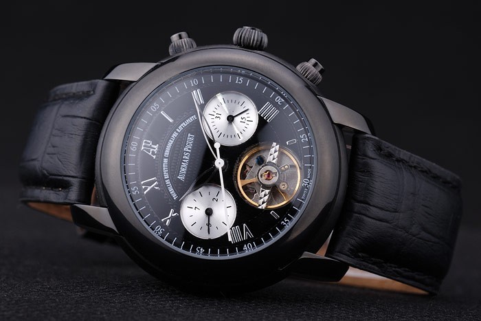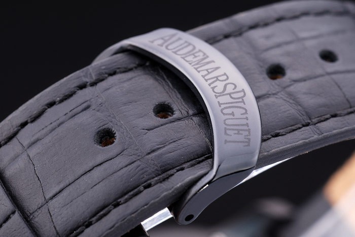Bracelet en acier inoxydable: crocodile Bracelet en cuir noir avec la chaleur en relief Audemars Piguet nom et le logo et une Audemars Piguet inscrit ion-plaqué flip-dessus le crochet clasp