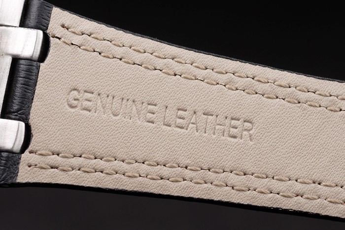 Bracelet en acier inoxydable: Heat gaufré Audemars Piguet crocodile noir bracelet en cuir avec double couture rouge et Audemars Piguet gravé brossé pli en acier inoxydable clasp