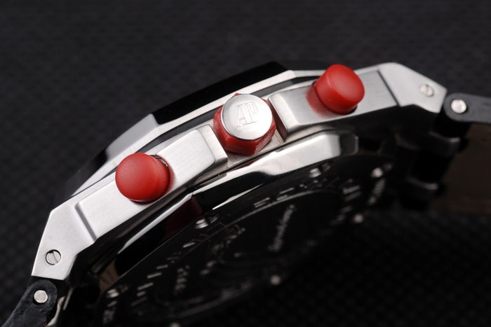 Crown: caoutchouc rouge couronne hexagonale avec les initiales AP sur le goujon en acier inoxydable en plus d’une couronne en caoutchouc rond rouge de chaque c té de it