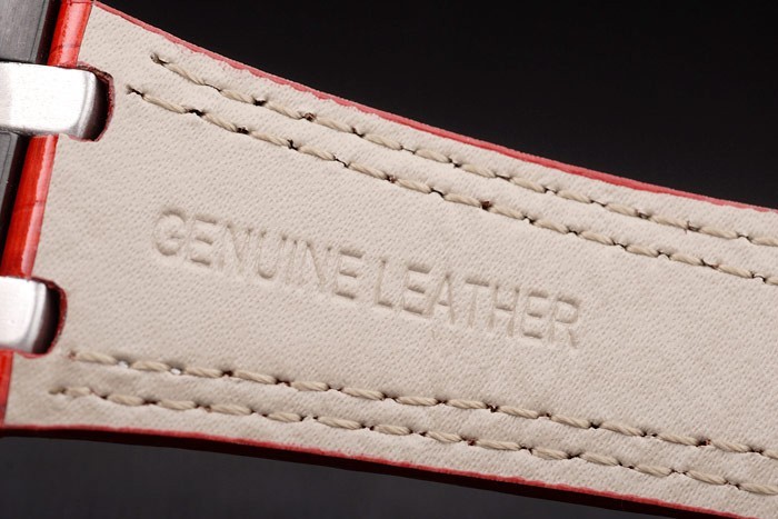 Bracelet en acier inoxydable: Heat gaufré Audemars Piguet rouge bracelet en cuir de crocodile avec double couture blanche et Audemars Piguet ion plaqué gravé fois en clasp