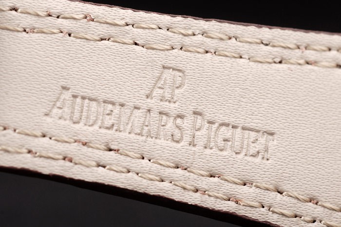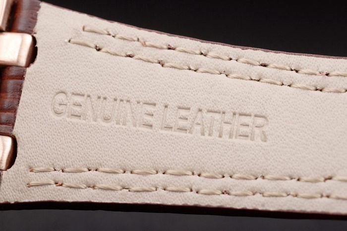 Bracelet: Heat gaufré Audemars Piguet bracelet en cuir brun crocodile avec double couture blanche et Audemars Piguet plaqué gravé or rose plier en clasp