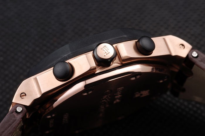 Crown: Ion plaqué couronne hexagonale protégé avec les initiales AP sur le goujon rose d’or, plus une couronne ronde sur chaque c té de it