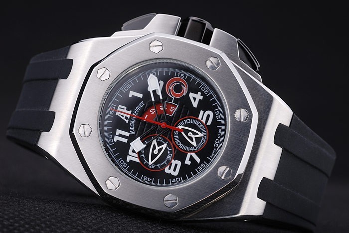 Bracelet: bracelet en caoutchouc noir avec la chaleur en relief timbre Audemars Piguet Royal Oak Offshore et une Audemars Piguet inscrit ion-plaqué crochet boucle clasp