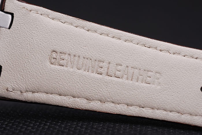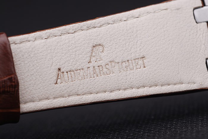 Bracelet: Brown bracelet en cuir de crocodile blanc coutures de fil et de la chaleur en relief nom Audemars Piguet et le logo et une Audemars Piguet inscrits en acier inoxydable flip-dessus le crochet clasp