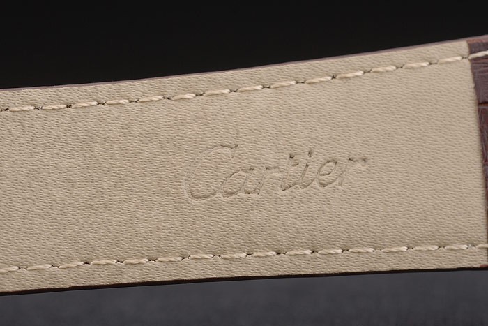 Bracelet en acier: Cartier en relief crocodile bracelet en cuir brun de chaleur avec 18k or rose plaqué plier en boucle déployante plaqué 18k or rose lunette avec Niched en crown