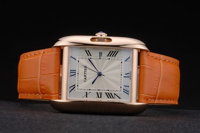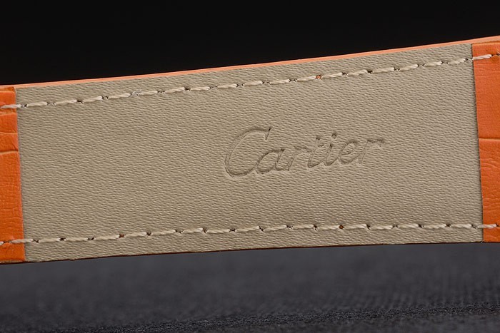 Bracelet en acier: Cartier orange, chaleur gaufré bracelet en cuir de crocodile avec 18k or rose plaqué plier en boucle déployante plaqué 18k or rose lunette avec Niched en crown