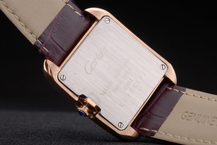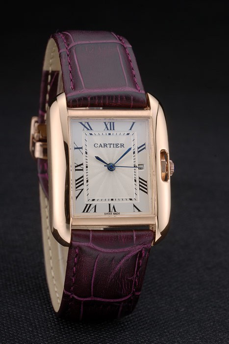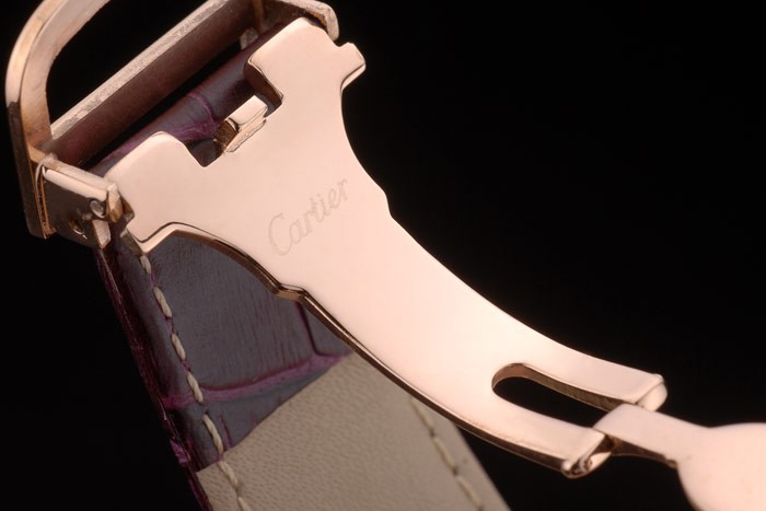 Bracelet en acier: Cartier en relief crocodile violet bracelet en cuir de chaleur avec 18k or rose plaqué plier en boucle déployante plaqué 18k or rose lunette avec Niched en crown