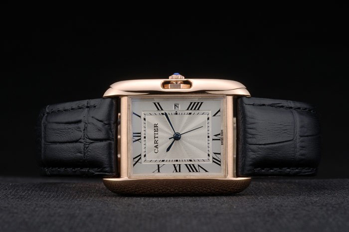 Bracelet en acier: Cartier en relief crocodile noir bracelet en cuir de chaleur avec 18k or rose plaqué plier en boucle déployante plaqué 18k or rose lunette avec Niched en crown