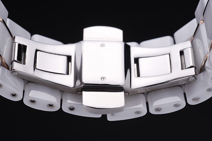 Bracelet céramique: blanc céramique et or rose bracelet lien avec Cartier High-Tech Ceramic gravé push-presse caché clasp