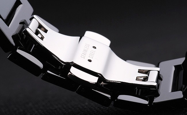 Bezel: 440 acier inoxydable, gravé, recouvert de plastique noir.