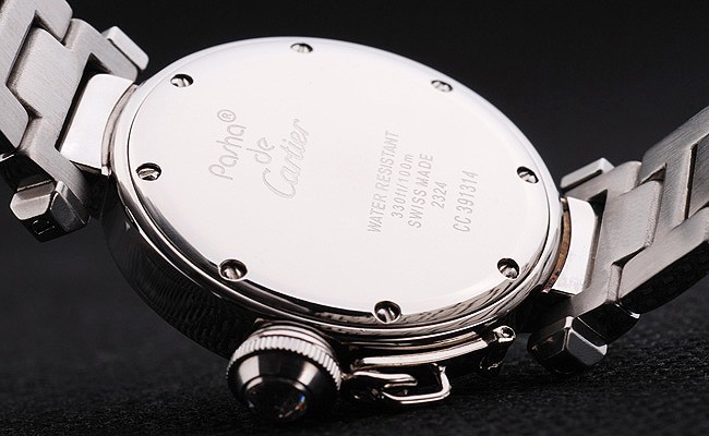 Retour: Acier inoxydable vissé cas avec Cartier inscriptions