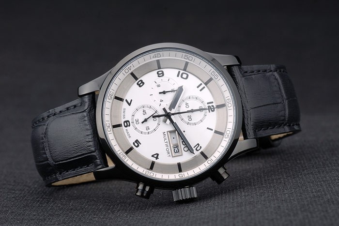 Mido Multifort Noir Céramique Bezel Noir Croco Cuir Bracelet Cadran Blanc 80278