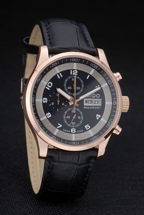 Mido Multifort or rose Lunette en acier inoxydable noir Croco Bracelet en cuir cadran noir 80279