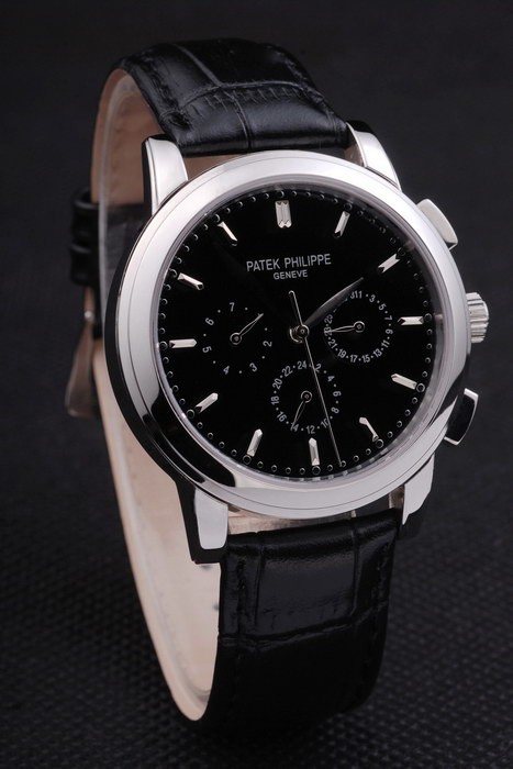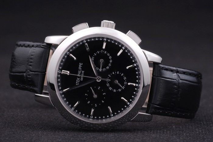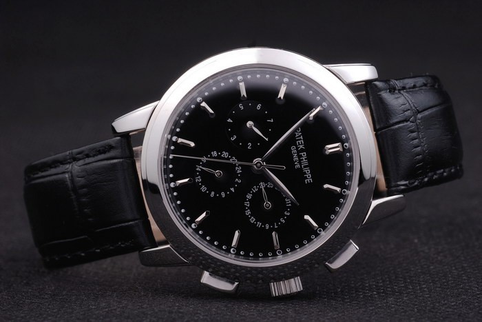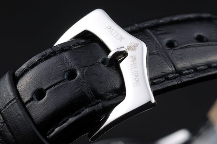 Bracelet en acier inoxydable: bracelet en cuir noir avec Patek Philippe timbre et un pli en acier inoxydable clasp