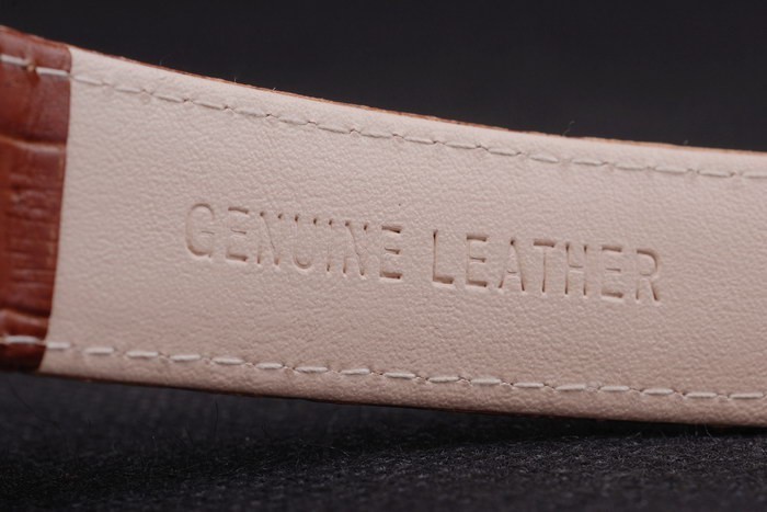 Bracelet or: Bracelet en cuir brun avec Patek Philippe timbre et un or rose plier en clasp
