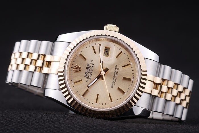 Bracelet en acier inoxydable: acier inoxydable brossé et or jaune bracelet lien avec Rolex logo caché clasp