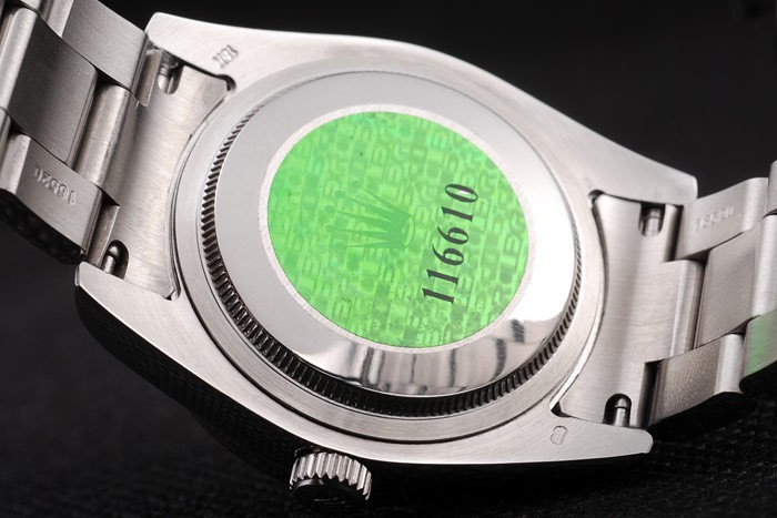 Retour: Acier inoxydable de cas de poussée en arrière avec vert Rolex logo stamp