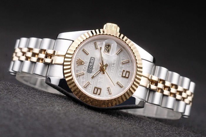 Bracelet: acier Deux lien tonique bracelet en acier inoxydable brossé et or jaune 18 carats plaqué avec Rolex gravé fermoir caché l’affichage de la longueur Rolex logo