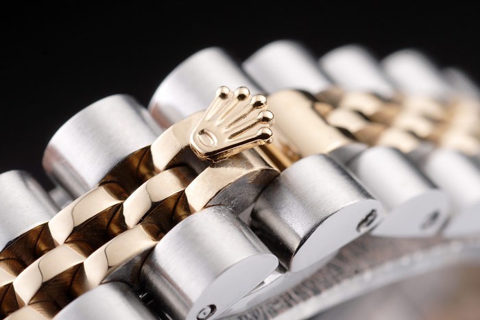 Crown: plaqué or jaune 18k inoxydable couronne cutwork en acier avec Rolex logo