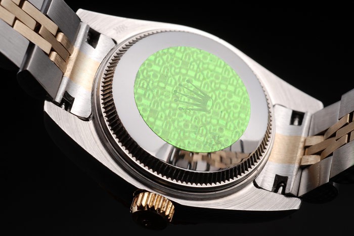 Retour: Acier inoxydable push-en affaire avec le vert Rolex logo stamp