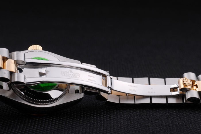 Retour: Acier inoxydable push-en affaire avec le vert Rolex logo stamp