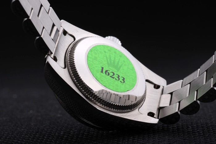 Retour: Acier inoxydable de cas de poussée en arrière avec vert Rolex logo stamp