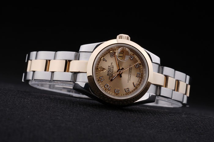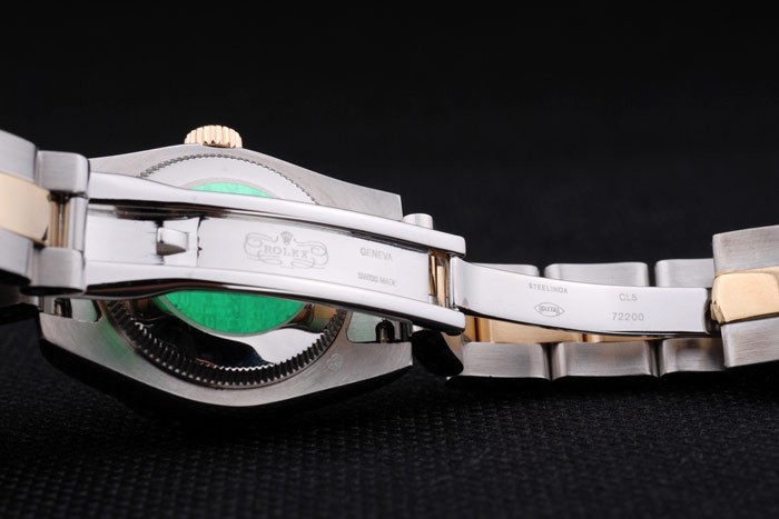 Cette réplique de montre Rolex Datejust est d’excellente qualité. Le boîtier en acier inoxydable est poli et présente le logo Rolex estampé en vert. Le mouvement cinétique (automatique) est de qualité Miyota. Le bracelet en acier inoxydable est à double rangée et poli.