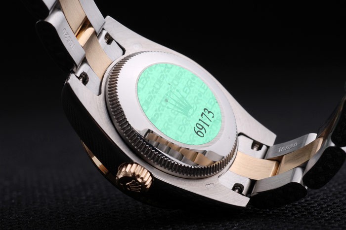 Retour: Acier inoxydable push-en affaire avec le vert Rolex logo stamp