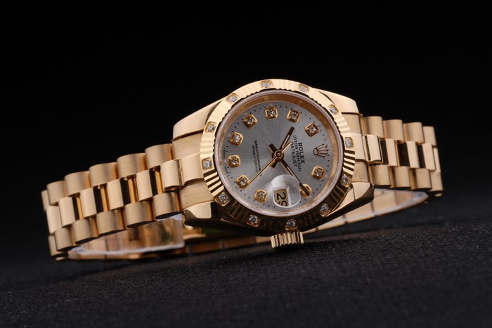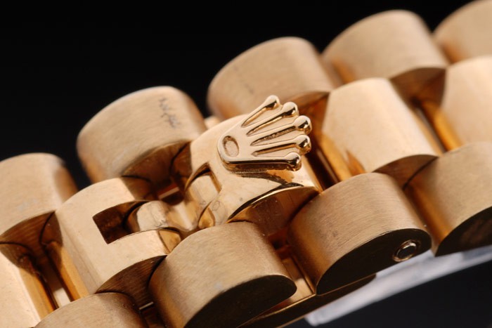 Watch fermoir: couronne plaqué or jaune 18k cutwork en acier avec Rolex logo