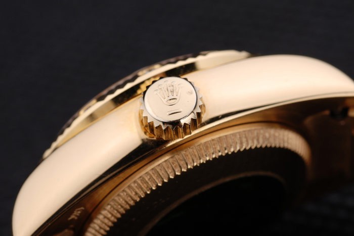 Retour: plaqué or jaune 18k inoxydable cas de poussée en arrière en acier avec le vert Rolex logo stamp