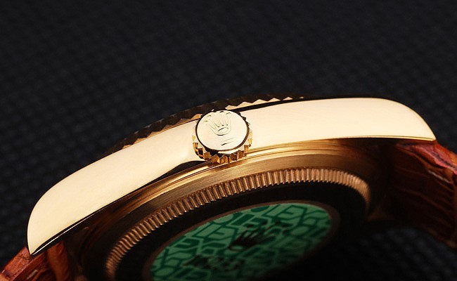 Retour: plaqué or jaune 18k inoxydable cas de poussée en arrière en acier avec le vert Rolex logo stamp