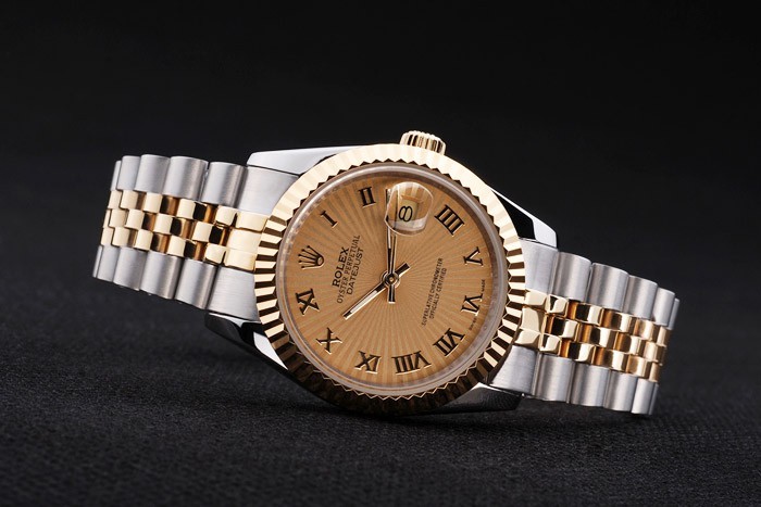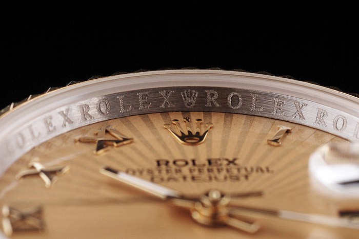 Crown: plaqué or jaune 18k couronne cutwork en acier avec Rolex logo