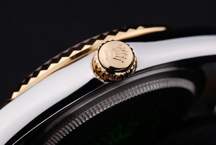 Retour: Acier inoxydable push-en affaire avec le vert Rolex logo stamp