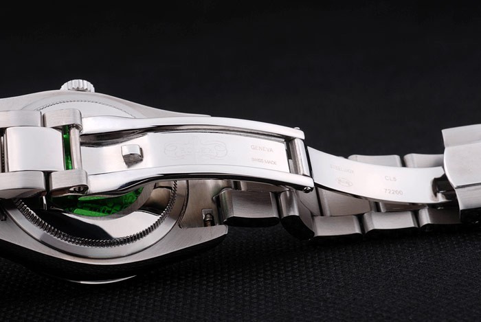 Retour: Acier inoxydable de cas de poussée en arrière avec vert Rolex logo stamp