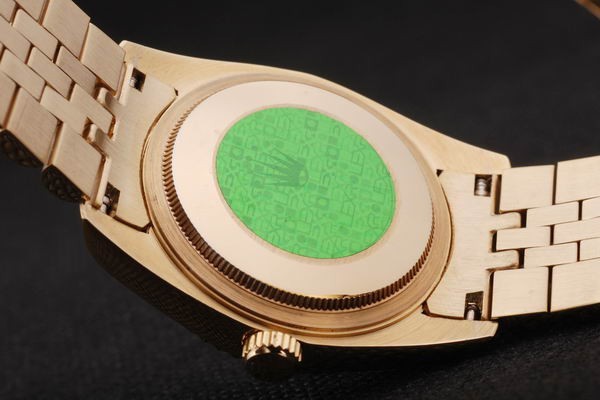 Back: Repoussez en or jaune 18 carats avec l’autocollant vert et Rolex markings