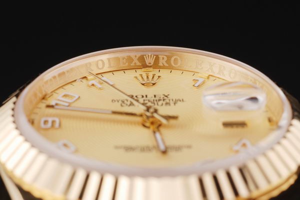 Back: Repoussez en or jaune 18 carats avec l’autocollant vert et Rolex markings