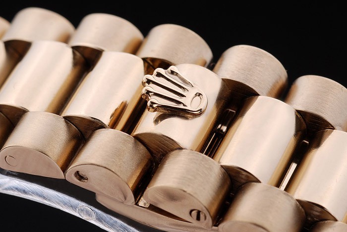 Bracelet: plaqué or jaune 18k inoxydable lien en acier bracelet avec gravure Rolex fermoir caché affichant la longueur Rolex logo