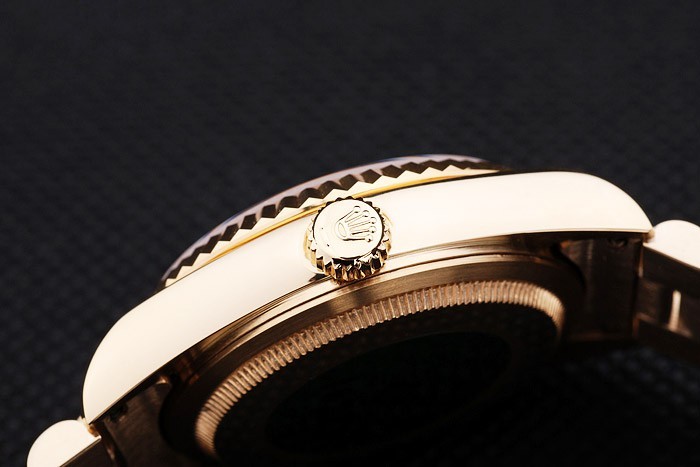 Retour: plaqué or jaune 18k inoxydable cas de poussée en arrière en acier avec le vert Rolex logo stamp