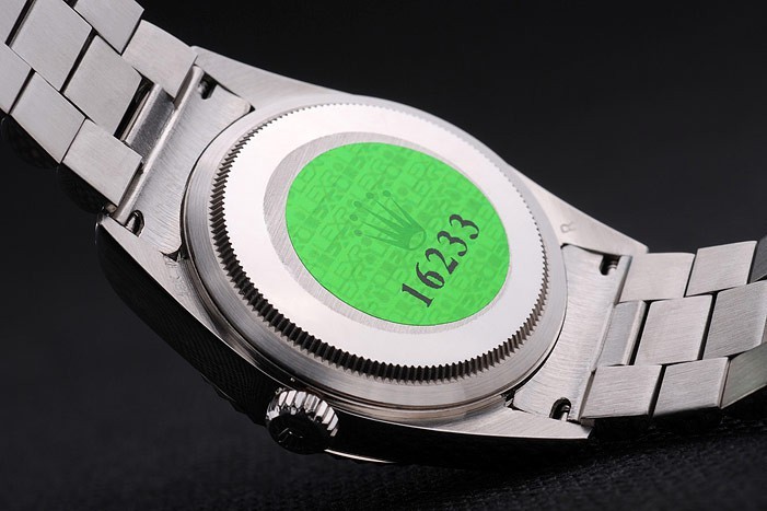 Retour: Acier inoxydable de cas de poussée en arrière avec vert Rolex logo stamp