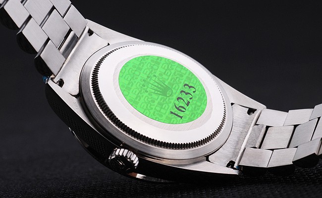 Retour: Acier inoxydable de cas de poussée en arrière avec vert Rolex logo stamp