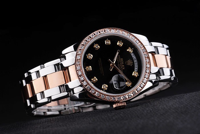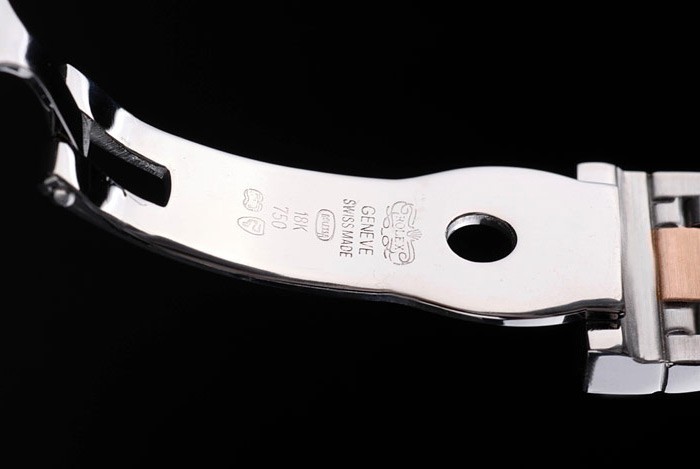 Crown: 18k or rose plaqué couronne cutwork en acier avec Rolex logo