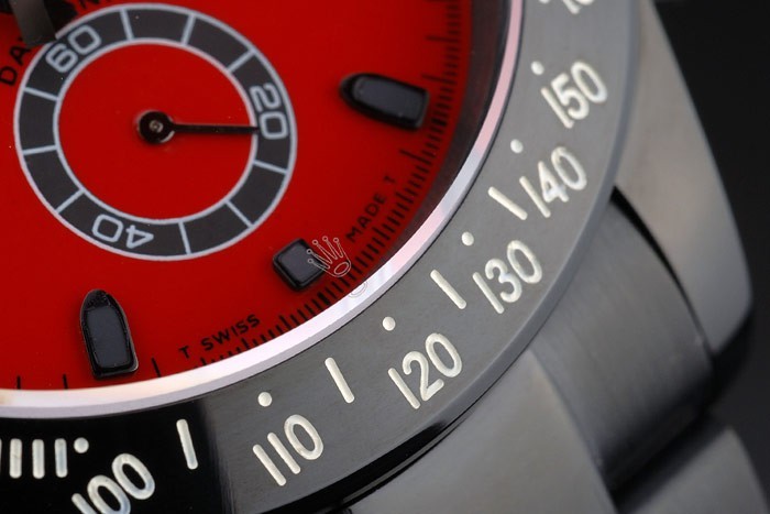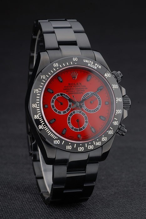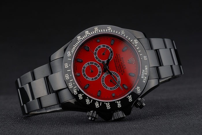 Rolex Daytona Noir Ion plaqué tachymètre noir bracelet en acier inoxydable cadran rouge 80248